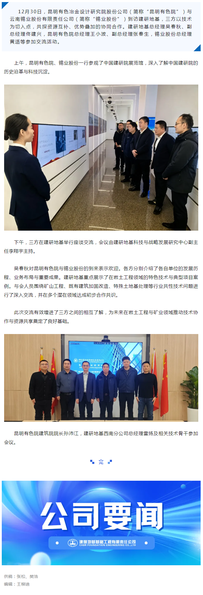 建研地基与昆明有色院、锡业股份开展合作交流