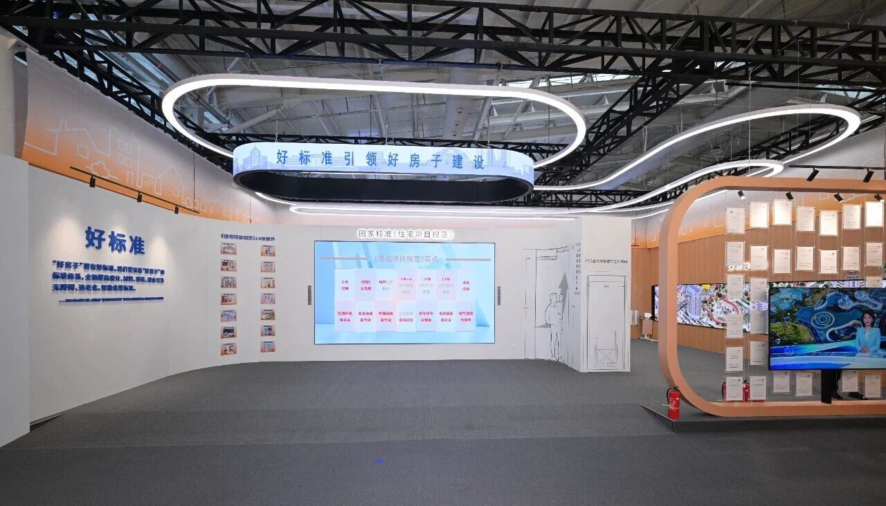 好房子标准体系展示区:以倪虹部长提出的“五好”理念为核心,梳理了我国好房子建设领域国家、行业、团体标准,构建了较为健全的好房子标准体系,涵盖了好房子建设的各个方面,实现了好房子标准化全领域覆盖、全流程控制、全手段运用。