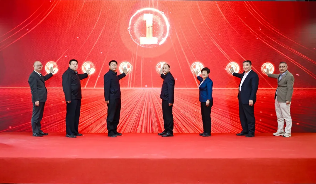 何光彩、彭利锋、于海波、乔杰、陈宝剑、王存玉、许杰峰共同登台启动北京大学怀密医学中心第三批项目建设。