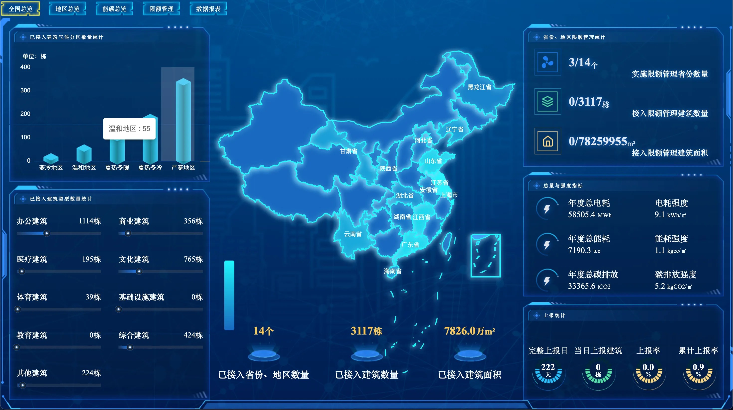 该平台通过技术与功能的先进性、原有平台集成与标准数据接口的兼容性、建筑静态数据与动态能碳数据的耦合性,全面响应了“双碳”目标与“碳排放双控”目标,为实现重点公共建筑碳排放监测管理与构建详实的“中国公共建筑能碳地图”提供了坚实基础,同时为各级政府主管部门制定节能减排决策提供了有力支撑。