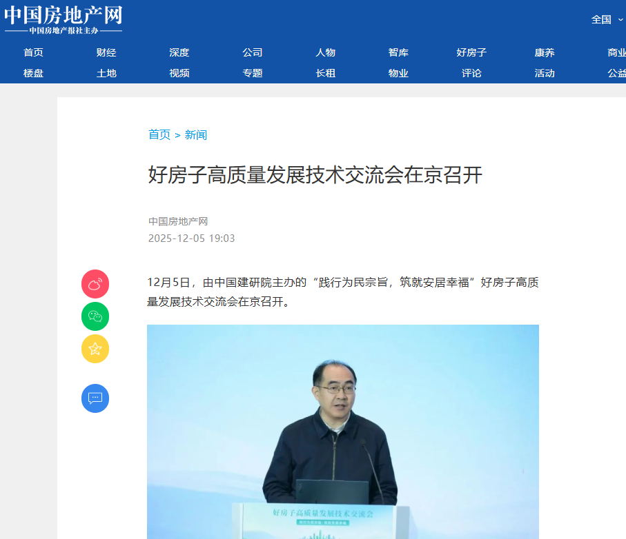 报道表示,中国建研院提出的“以技术为导向”的“365好房子体系”,是一个开放共享的成果体系,希望以此为基础,加速构建“政产学研用融”全产业链协同创新格局,以技术融合驱动产业升级,以标准引领重塑居住价值,共同推动“好房子”建设成为建筑行业高质量发展的新引擎。
