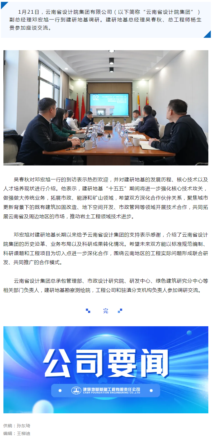 云南省设计院集团有限公司一行到建研地基调研交流